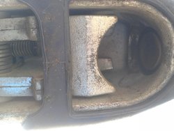 Abierto. Se ve el mecanismo, especie unas levas que al tocar la bola en la pieza de arriba (la que parece que tiene dos dientes) moviéndola se deja escapar de las levas y cierra fortísimo mediante un muelle la cavidad.