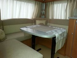 Hola a todos, ahora que casi la tengo lista y a mi gusto, os enseño mi conjunto, Ssangyong Rexton 270 Xdi y Fendt Bianco Classico 470 TFB. Con el coche muy contento, como tira y con la recien comprada Fendt, pues enamorado, nada mas que entre en ella, supe que era mia. Lo unico que no me agradaba del todo, era la tapiceria, mi mujer y yo somos de colores claros y ese rojo burdeos junto con unas cortinas naranjas, no nos terminaban de entrar, asi que las cambiamos.
